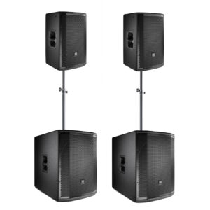 JBL VRX geluidset 2 bestaat uit maar liefst 6 JBL VRX932 Line array toppen en 8 JBL SRX718 subwoofers, de set is geschikt voor zowel binnen als buiten. De geluidskwaliteit van de JBL VRX932 toppen is erg zuiver en door zijn 132db per speaker aan geluidsdruk draagt het geluid ook nog eens erg ver. Hierdoor zijn de VRX932 speakers inzetbaar voor o.a. festivals, hallen en zalen waarbij het geluid veel reikwijdte nodig heeft. Ondersteunt door de JBL SRX718 subwoofers uitgevoerd met 18″ inch speaker is een diepe en krachtige bas gegarandeerd. Kortom een echte power set.